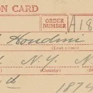 The draft registration card of Harry Houdini indicates that he worked as an actor. The signature on Houdini’s card reads Harry Handcuff. The Selective Service Act of May 18, 1917, authorized the President to temporarily increase the U.S. military. Under the authority of this act and later acts, the Army’s Office of the Provost Marshall General supervised the registrations of approximately 24 million men for the World War I draft. Three registrations were held: the first, on June 5, 1917, for men aged 21 through 30; the second, on June 5, 1918, for men who had become 21 since June 5, 1917, supplemented by a registration held August 24, 1918, for men who had become 21 since June 2, 1918; and, the third, on September 12, 1918, for all men aged 18 through 45 who had not previously registered. The existence of a draft card does not necessarily denote military service. Registration is often confused with induction into the military; however, only a small percentage of those who registered were actually inducted into the military. The reverse is also true. All men who served in World War I did not necessarily register for the draft. Those who volunteered or those who were already in the military did not register.