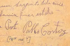 Pvt. Pablo Cortez when we went over the top. When they gave us [escomecies?] – and then when I started seeing that the Americans fell and also saw the Germans that fell. Further, I turned and no longer saw the corporal who I carried [llevaba?] ) and so we headed for a Sergeant of the same company.