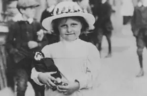 The original caption for this photograph reads; Young survivor of the Lusitania who lost father, mother, sister, and brother in disaster. Little Helen Smythe was rescued from the sea by Ernest Cowper, a journalist from Toronto, Canada, when the Lusitania was torpedoed and sunk by a German submarine. She was unaware of the fate of her father, mother, sister and brother who were aboard the ill-fated ship. May 24, 1915.