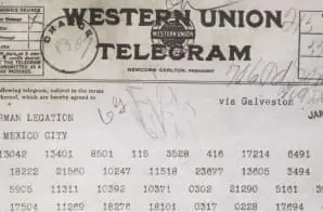 German Foreign Minister Arthur Zimmermann sent this encoded message to the President of Mexico on January 16, 1917, offering United States territory to Mexico in return for joining the German cause in World War I. In return for the military alliance, Germany would help Mexico regain New Mexico, Texas, and Arizona from the United States. The obvious threats to the United States contained in the telegram inflamed American public opinion against Germany and helped convince Congress to declare war against Germany in 1917.