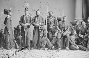 Full Citation: Zouaves, 9th N.Y. Volunteer Infantry; ca. 1860 – 1865; Mathew Brady Photographs of Civil War-Era Personalities and Scenes, 1921 – 1940; Records of the Office of the Chief Signal Officer, Record Group 111. [Online Version, https://docsteach.org/document/zouaves-9th-ny-volunteer-infantry/, March 26, 2026]