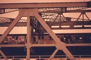 Original caption states: “Crossing the Harlem River into the Bronx in New York City the problem of how to move people and goods is ultimately bound up with the quality of life everywhere. The lands adjacent to the bight, rivers flowing into it, and the bays and estuaries edging it have direct impact upon the environment of the coastal waters. The New York, New Jersey Metropolitan region is one of the most congested in the world.”