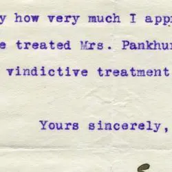 Emily V. Fussell, an English woman, wrote this letter to President Woodrow Wilson to thank him for treating Emmeline Pankhurst fairly. She wrote that England had not treated Pankhurst the way they should have. It comes from an appeal of English suffragette Mrs. Emmeline Pankhurst for admittance.