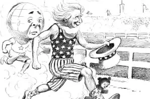 This cartoon is featured in America and the World: Foreign Affairs in Political Cartoons, 1898–1940, a free PDF book from the Center for Legislative Archives at the National Archives.