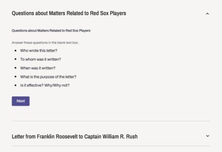 When students click “When You’re Done,” they will be tasked with reflecting on the correspondence they just read, and writing a paragraph addressing the following questions: