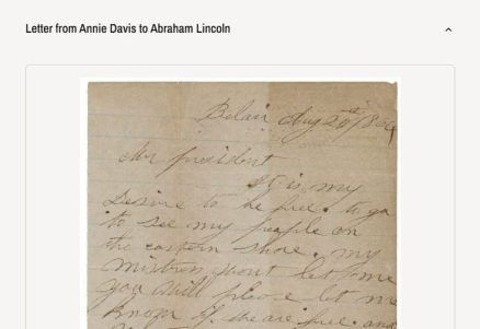 Students will study a letter from Annie Davis, a woman who was enslaved in Maryland and wrote a letter to President Abraham Lincoln during the Civil War to find out if “we are free.”