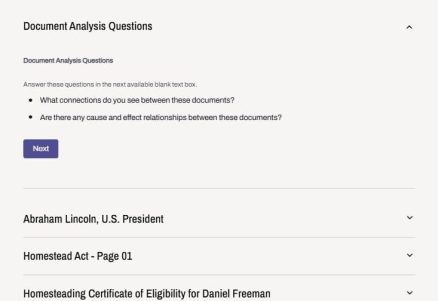 Model careful document analysis with the each document in the sequence. Direct your students to examine the first three documents. Ask them what connections they see and if there any cause-effect relationships between them? Answers to these questions should be entered into the first blank text box.