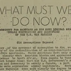 This letter describes and includes a pamphlet from a militant Vietnam protest group. This pamphlet includes instructions on how to create explosive devices. This document was digitized by teachers in our Primarily Teaching 2013 Summer Workshop at our Boston location.