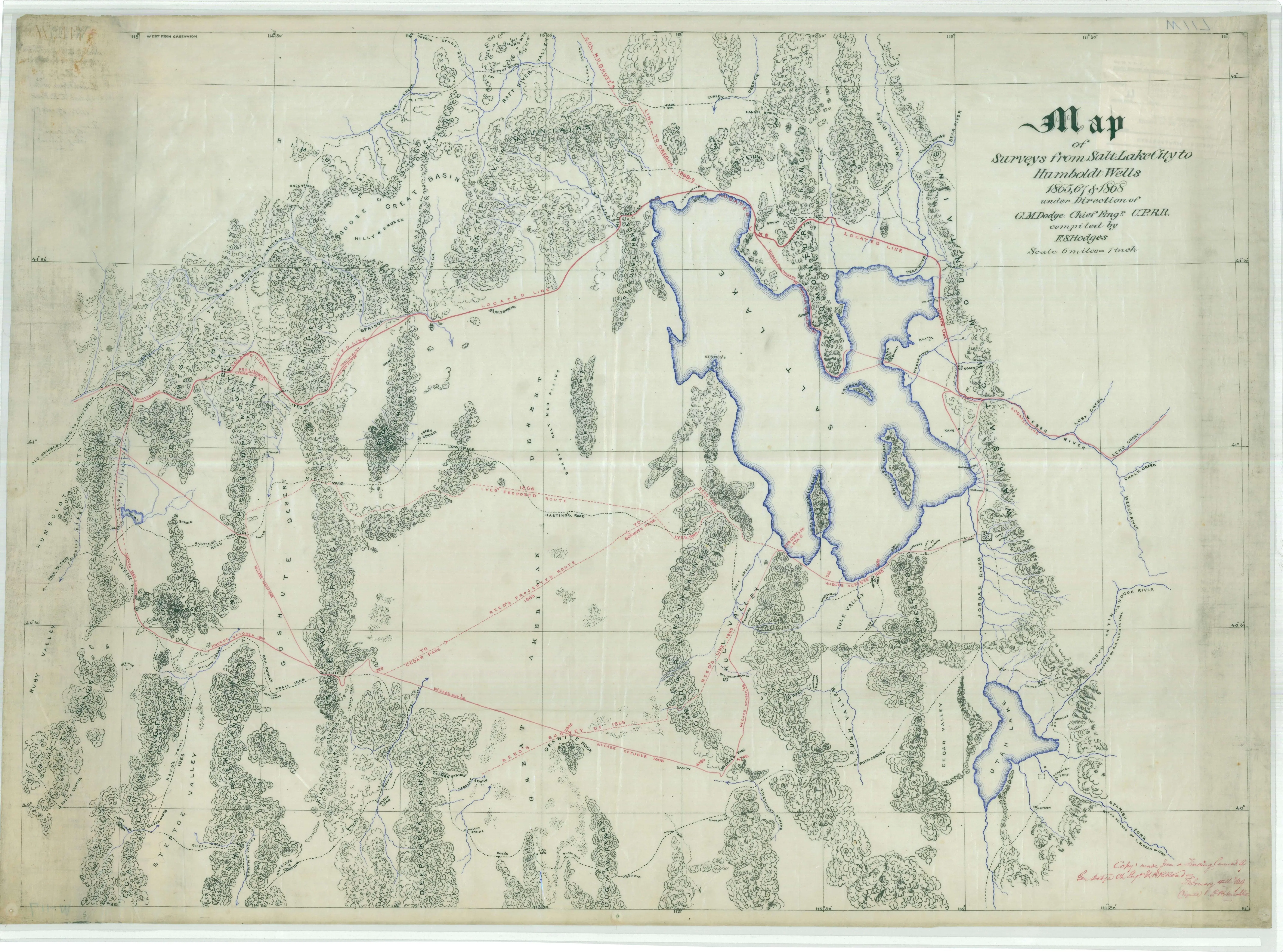 Full Citation: Map of Survey from Salt Lake City to Humbolt Wells; 2/4/1869; Roads; Civil Works Map File, 1818 – 1947; Records of the Office of the Chief of Engineers, Record Group 77; National Archives at College Park, College Park, MD. [Online Version, https://docsteach.org/document/map-of-survey-from-salt-lake-city-to-humbolt-wells/, February 22, 2026]