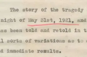 Also included is a newspaper article about the supposed initial cause of the violence – a claim by a white woman working in an elevator that a Black delivery man assaulted her (the charges were dropped and there were no grounds to prosecute the man).
